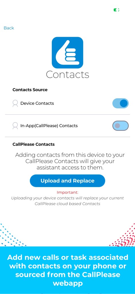 You can still access Device Contacts as before. You can still upload all the contacts on your phone to CallPlease, as before.